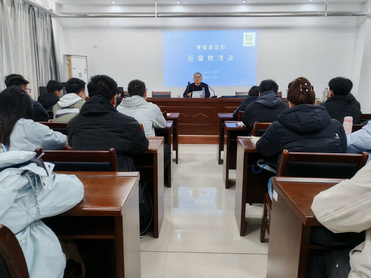 11月27日,学校党委委员、纪委书记、监察专员李继峰在9号教学楼610会议室,以“反腐败浅谈”为主题,为理学院、机场学院学生讲授了一堂兼具思想高度与实践温度的思政课。